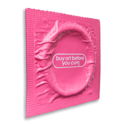 The tagline "Buy Art before you Cum" encapsulates the striking paradox and societal critique ingrained within Carmet's creation. This bold amalgamation of art and an item associated with intimate protection confronts the commodification present in both spheres. The tagline itself serves as a poignant statement, urging reflection on the prioritization of consumerism over artistic appreciation and responsible sexual behavior.